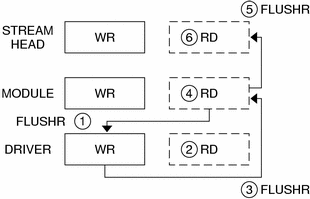 Figure 8-1 and Figure 8-2 further demonstrate flushing the entire stream due to a line break. Figure 8-1 shows the flushing of the write side of a stream, and Figure 8-2 shows the flushing of the read side of a stream.