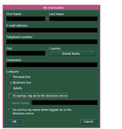 The next time you start the SunForum software, the My Information window will not display automatically. However, you can change the information in the My Information window anytime by choosing Call