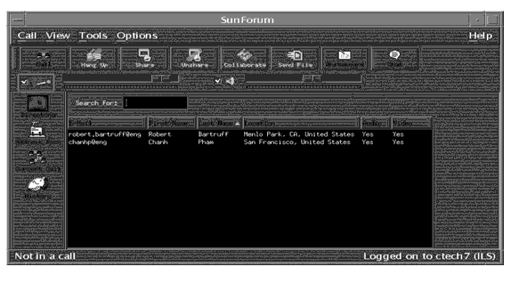 Note - You can also use the SunForum conference manager buttons to access most of the functions in the Call, View, and Tools menus. See Using the SunForum Software for more information.