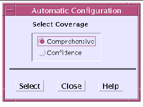 Auto Config mode--opens the Automatic Configuration dialog box which provides access to the Automatic Configuration feature. The Automatic Configuration feature simplifies the test session configuration by assigning a predetermined set of test options. See Using the Automatic Configuration Feature for instructions on using this feature.