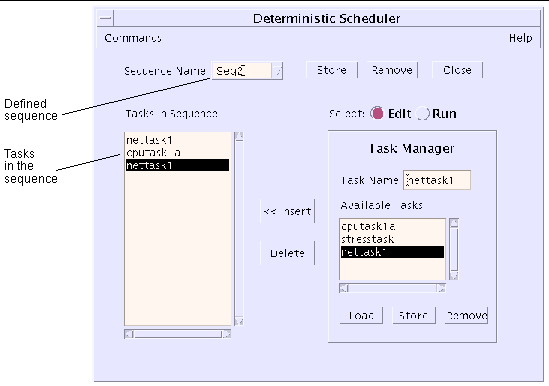 e. To save the sequence for future use, enter a name in the Sequence name field and press Store in the Task Manager panel.