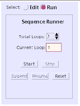 The right-hand panel displays the Sequence Runner panel ( FIGURE 4-14 ), providing access for you to define the number of times (loops) for the sequence to run and to start running the sequence.