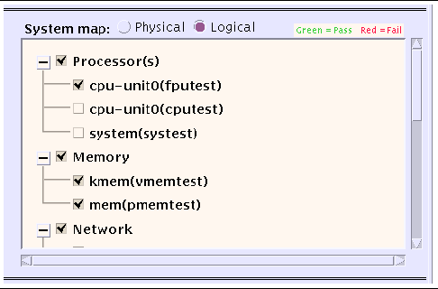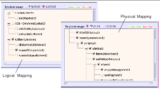 Logical Mapping--organizes the devices, according to their function, into groups. For example, SCSI disk, SCSI tape, and SCSI CD-ROM drives are placed in the SCSI-Devices group. You can focus your testing on a specific device, device group, or on all of the groups on the system.