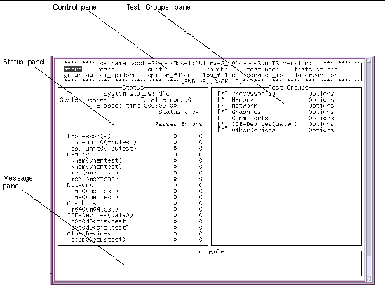 This chapter describes how to run a test session using the SunVTS TTY UI. The procedures are written in a step-by-step form so you can use them to become familiar with SunVTS using the SunVTS TTY UI. This chapter is divided into the following sections: