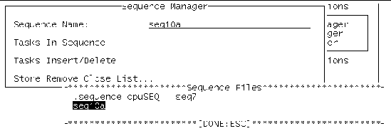 1. Invoke the Sequence Manager menu by selecting the Sequence Manager ( FIGURE 5-12 ) in the DSched Control menu ( FIGURE 5-10 ).