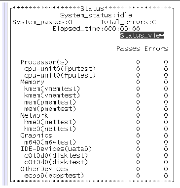 Monitor the test progress in the TTY Status panel. All test results are logged in the SunVTS log files.
