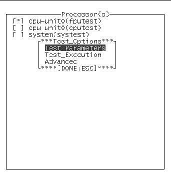 Note Note - For descriptions of these menus see SunVTS Dialog Boxes. |