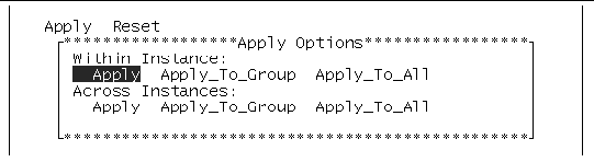 Within_Instance --applies the option settings to this test instance (test instance 1 for example) for this device with Apply , or to all the same instances within the same device-group with Apply_to_group , or to all the same instances for all like devices with Apply_to_All .