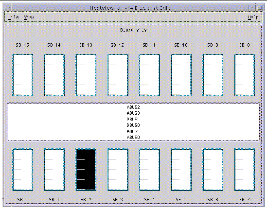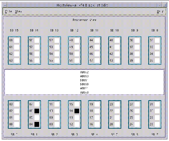 To select a single processor on a board and deselect all other processors on that board, click that processor with the left mouse button. To toggle the selection status of a processor on a board without affecting the selection status of any other processors on that board, click that processor with the middle mouse button. The selected processors are displayed in black.