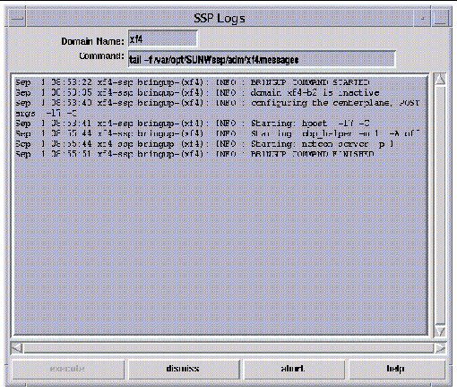 Displays a window that shows the SSP messages for a domain or for the platform. For more information, see SSP Log Files . |