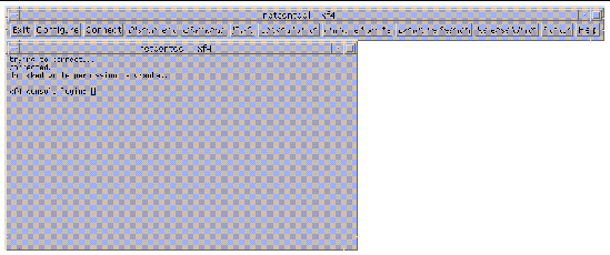 The netcon (1M) session is terminated and the window returns to its previous state.
