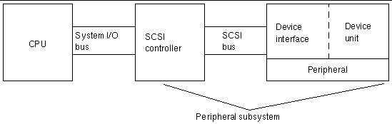 The combination of SCSI controller, SCSI bus, device interface and device unit make up the peripheral subsystem . All of these entities must be designed and configured to work together.