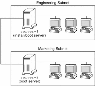 Systems cannot boot from an install server on a different subnet, so you make server-2 a boot server on the marketing group's subnet. You use the setup_install_server(1M) command to copy the boot software from the Solaris 9 DVD or the Solaris 9 Software 1 of 2 CD to the server-2 local disk (in the /export/boot directory).