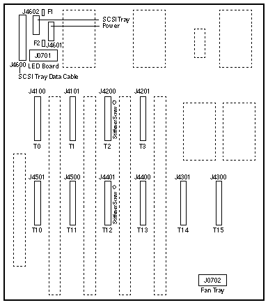 Some disk drives may bottom out against the two stiffener screws next to slots T2 and T12 if pan-head screw 240-1268 is installed.