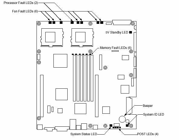 - POST Code LEDs: The server board includes an enhanced diagnostic