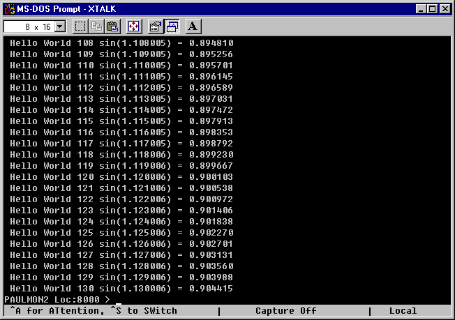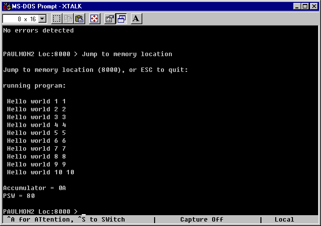 and running demo.hex, see return to monitor and printout of Accumulator