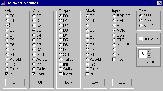 LPT1, say. Vdd is controlled by D2 with invert setting, logic '0' at this